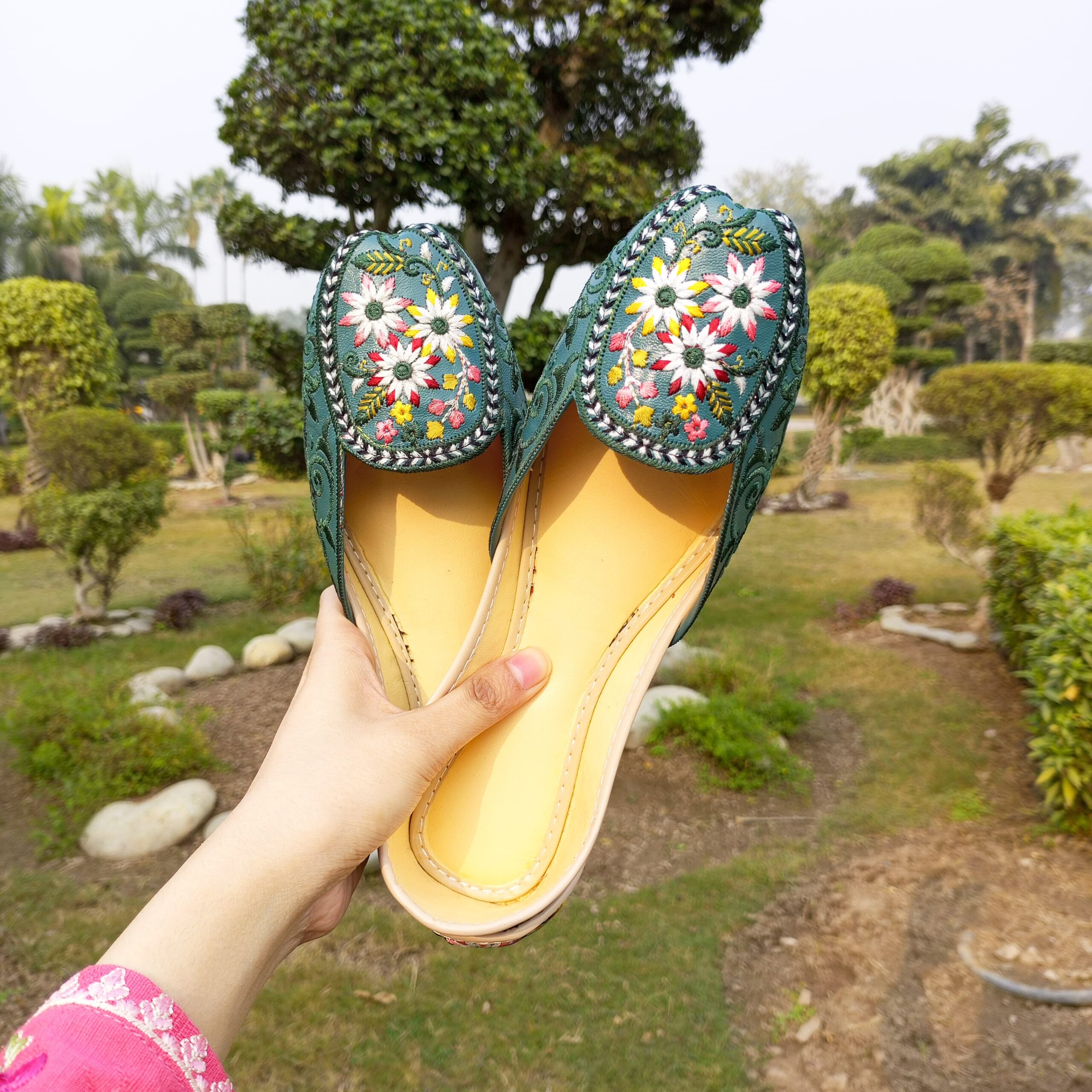 Expertly handcrafted with soft padding, our Teal color Embroided Loffer style khussa is a stylish addition to any outfit. Made for comfort and durability, it features a classic lady’s design. Elevate your fashion game with this versatile and trendy style.